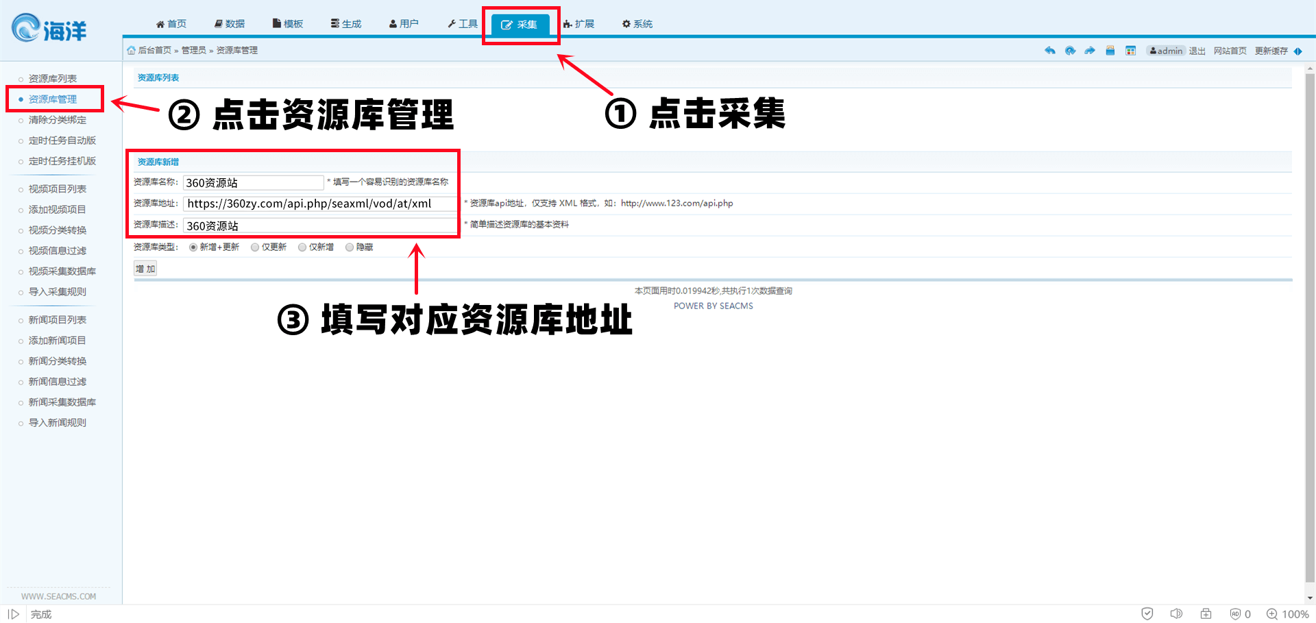 资源库地址:https://360zyzz.com/api.php/seaxml/vod/at/xml